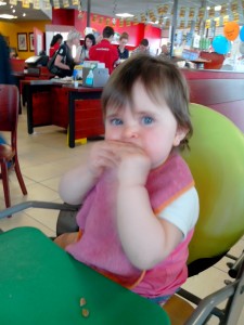 Afin de ne pas avoir à courir pour attraper des bus, maman à décidé de prendre le repas de Chloé avec et avons pu manger chez Flunch et visiter un peu le Centre Commercial.