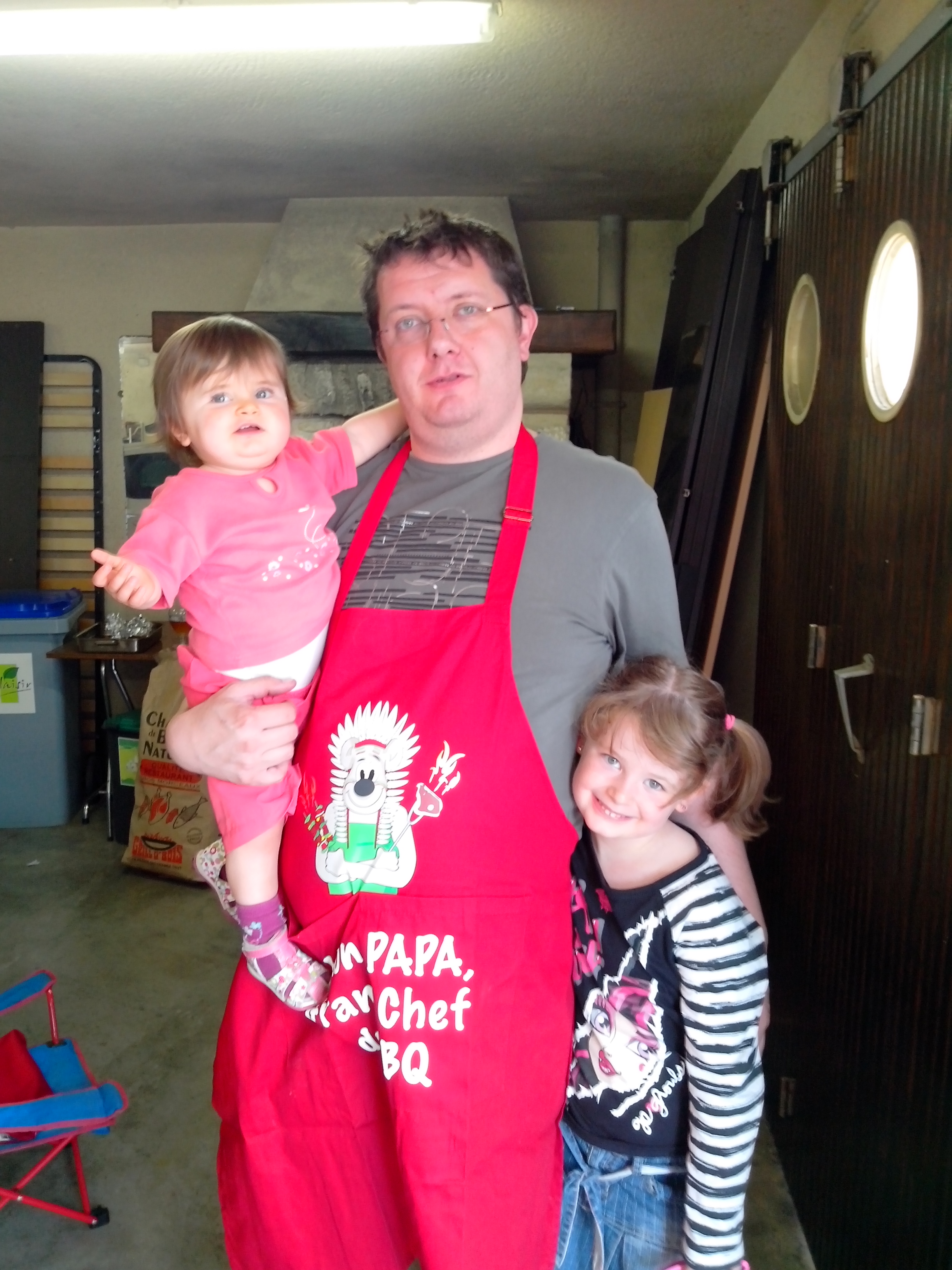 Pour l’occasion nous avons fait un Barbecue et nous avons offert un joli tablier à Papa pour sa fête!