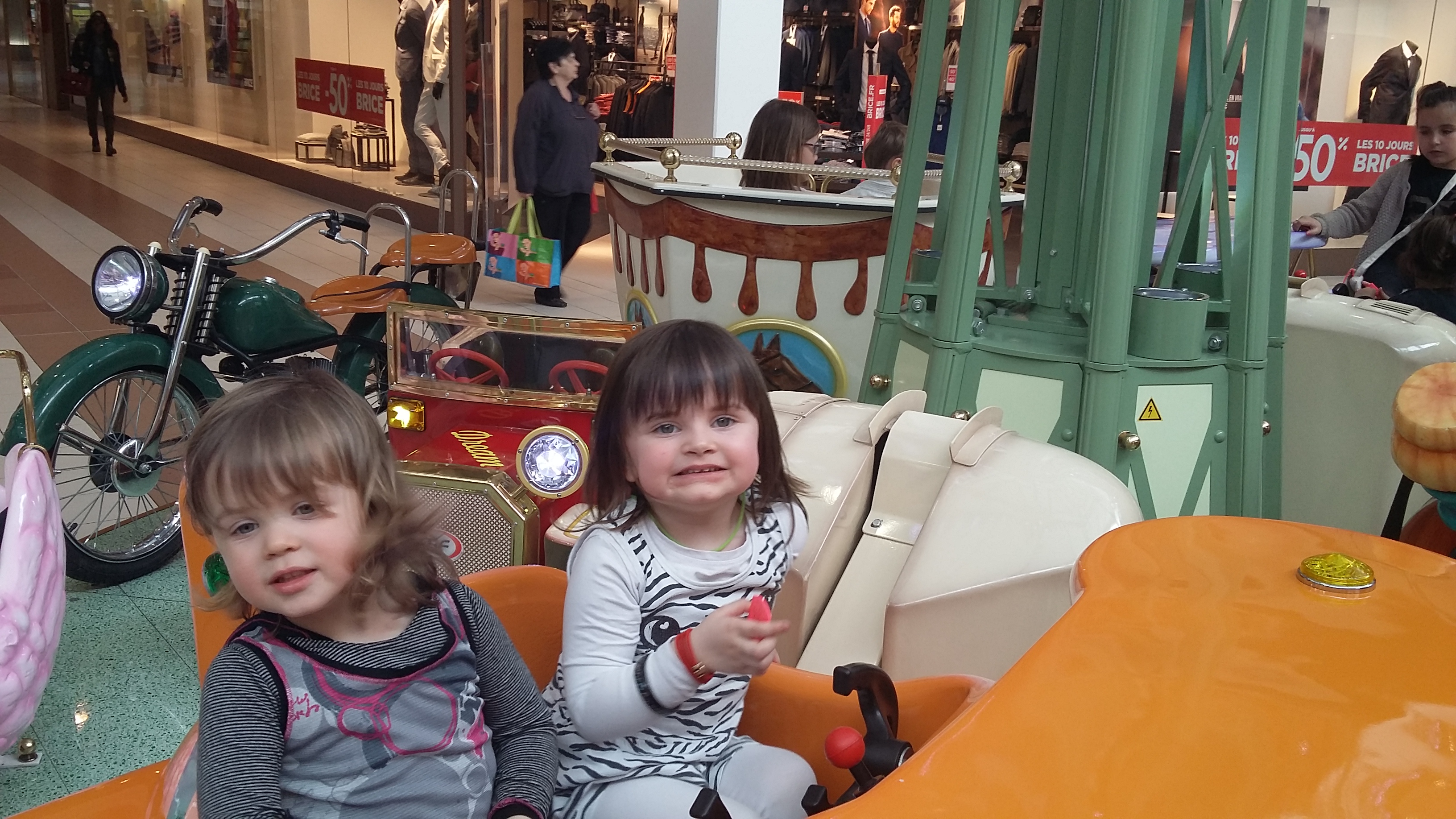 Mercredi j’ai passé la journée avec Alice et Célia et Tata Delphine . On a mangé chez elle et ensuite après midi shopping de grande 😉 J’ai pu me choisir toute seule des beaux bracelets , j’adore cela et j’en ai pris beaucoup et des très colorés et pailletées 😉 Maman a pris quelques vêtements pour ma sÅ“ur et moi et nous a racheté des ballons et de quoi faire des bulles dehors. C’était chouette. En plus on a pu faire du manège c’était cool.