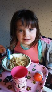 Le D Day, pour déjeuner j’ai eu le droit à mon repas préféré…des pâtes (à la carbonara pour changer du pesto) et de la crème à la Pistache et un Å“uf au chocolat.